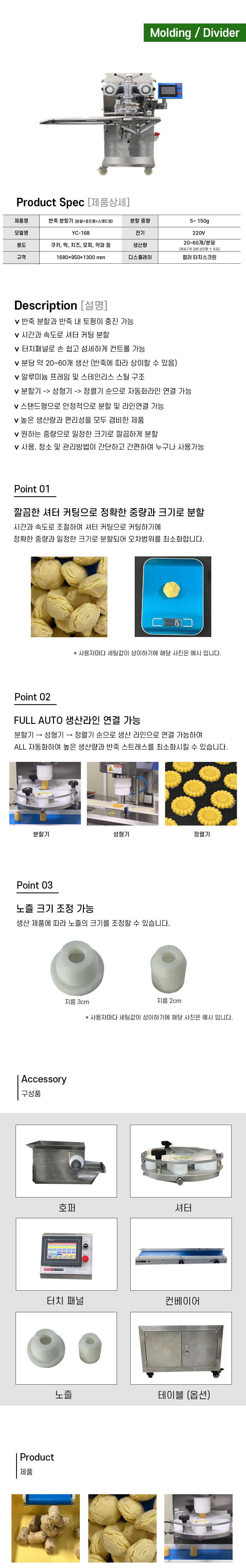 V 분당 20~60개 분할이 가능하여 인건비 감소에 도움이 됩니다. (반죽마다 상이함)