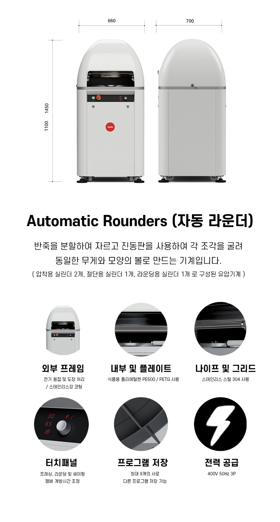 v 프레싱, 라운딩, 쉐이핑, 챔버 개방시간을 다이얼로 조정하여 사용