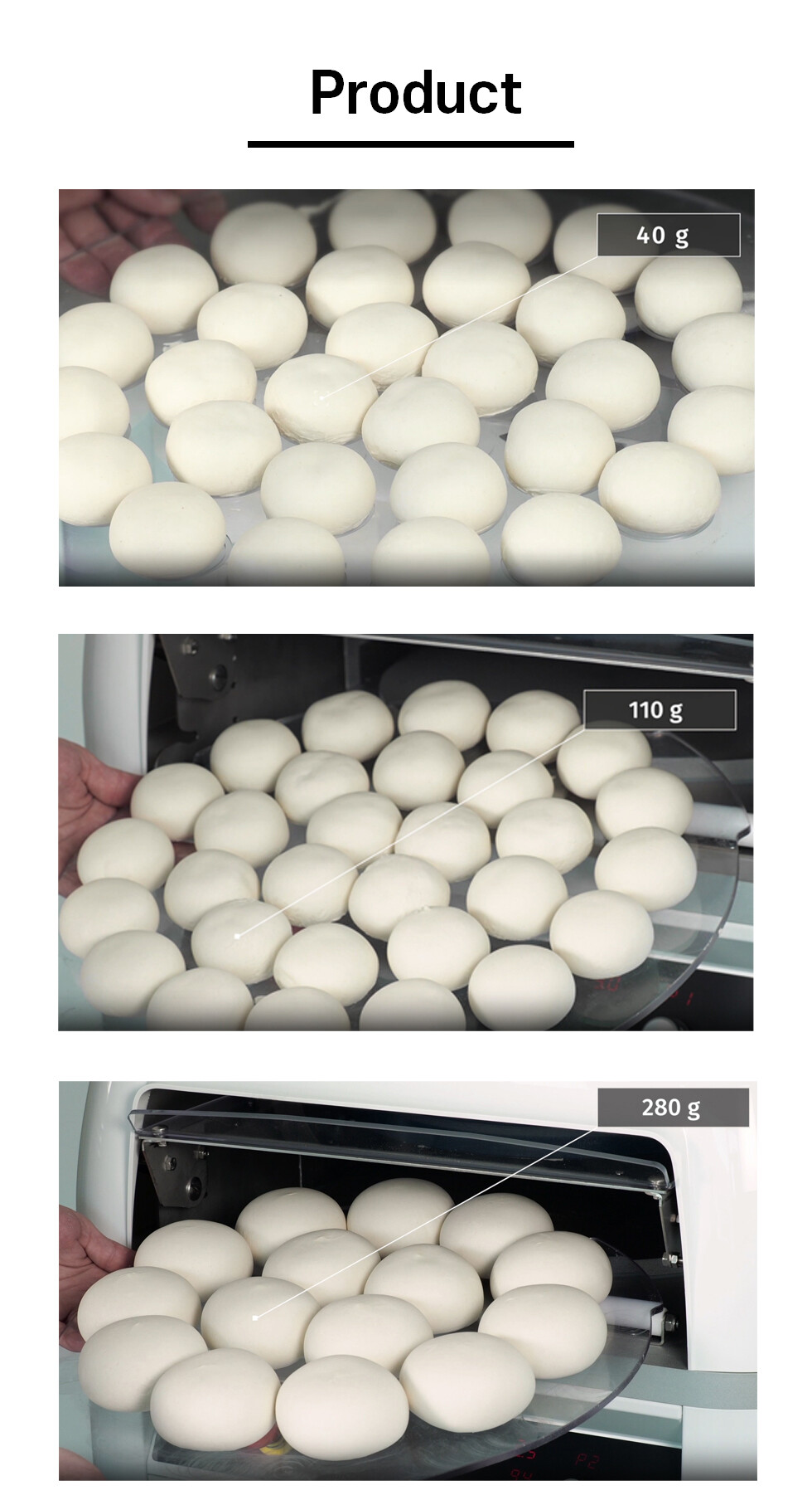 v 반죽 분할하여 진동판으로 각 조각을 굴려 동일한 무게와 모양으로 만드는 기계