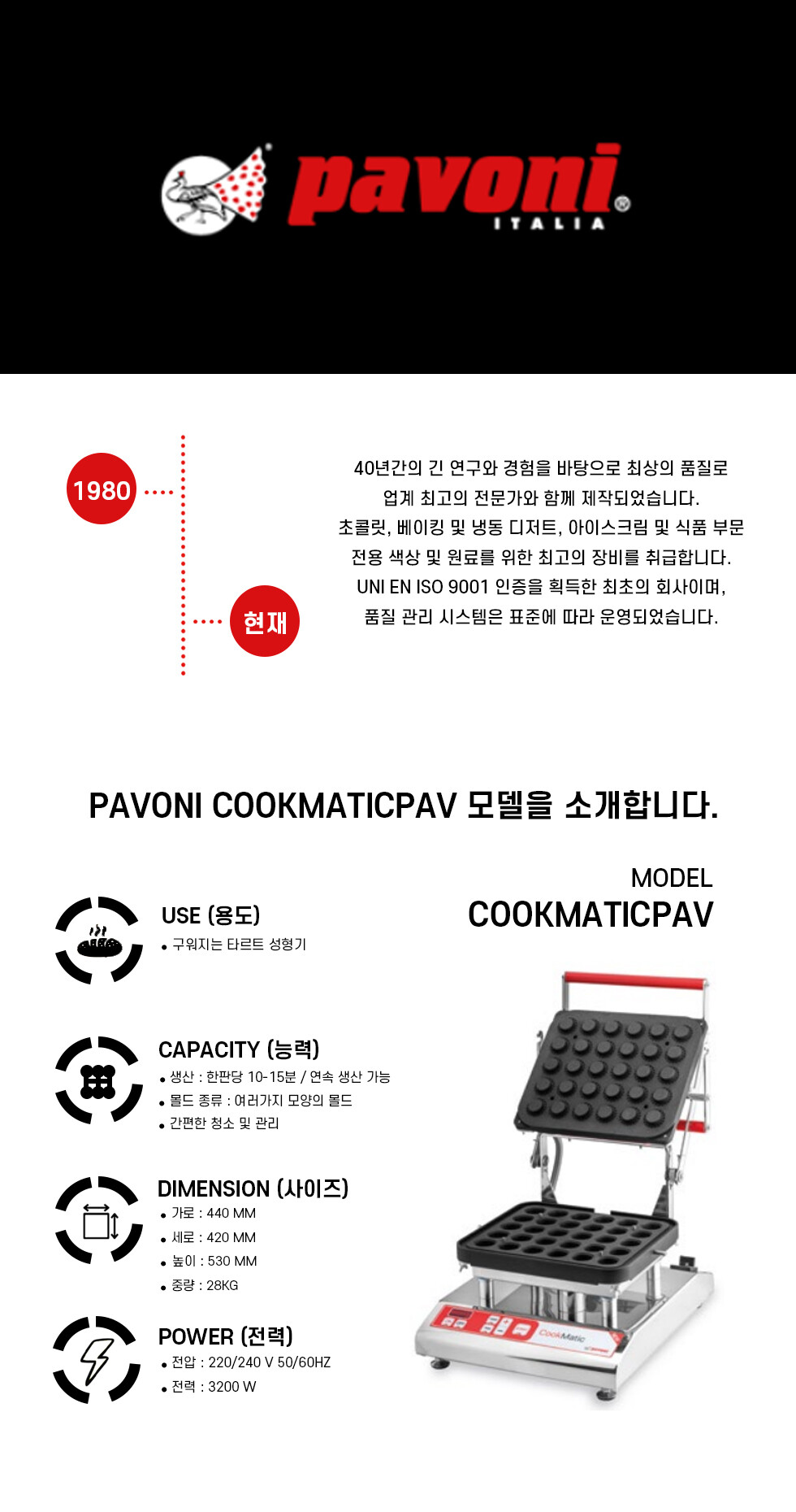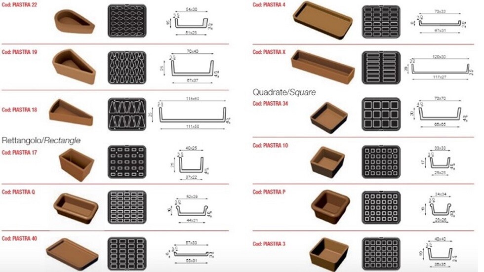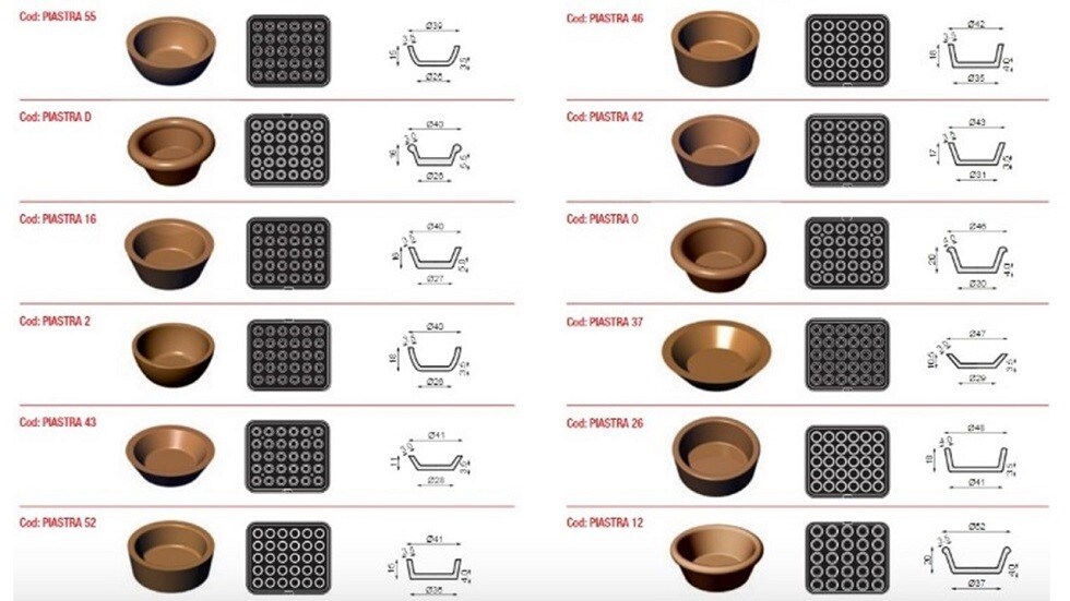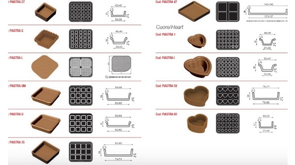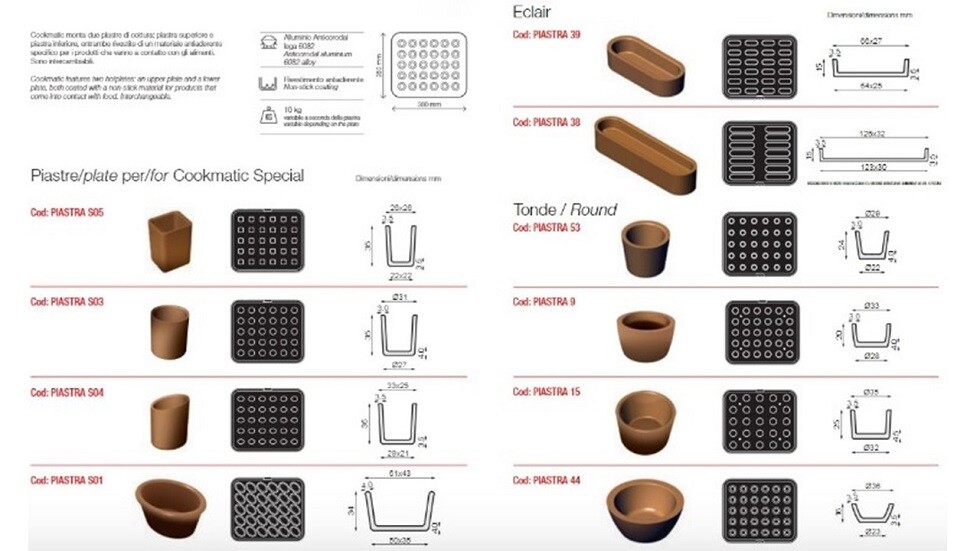 Cookmatic Special을 사용하면 Pavoni Italia가 특허를 받은 높이 조절이 가능한 특수 슬라이딩 메커니즘 덕분에 45mm 높이의 타르트렛을 만들 수 있습니다.