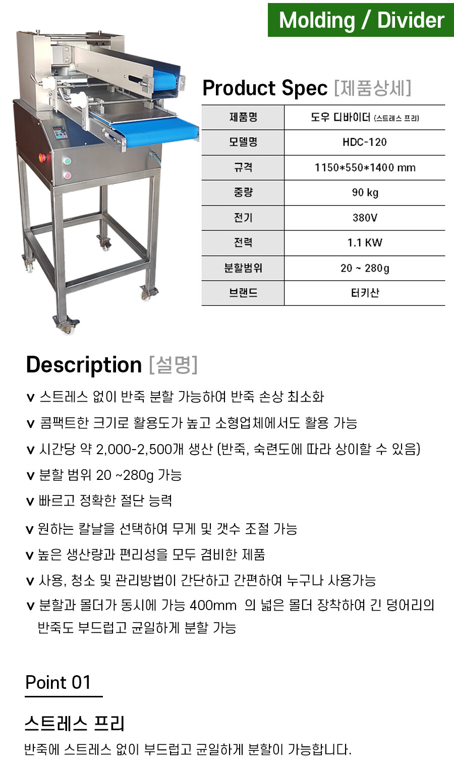 V 스트레스 없이 반죽 분할이 가능합니다.