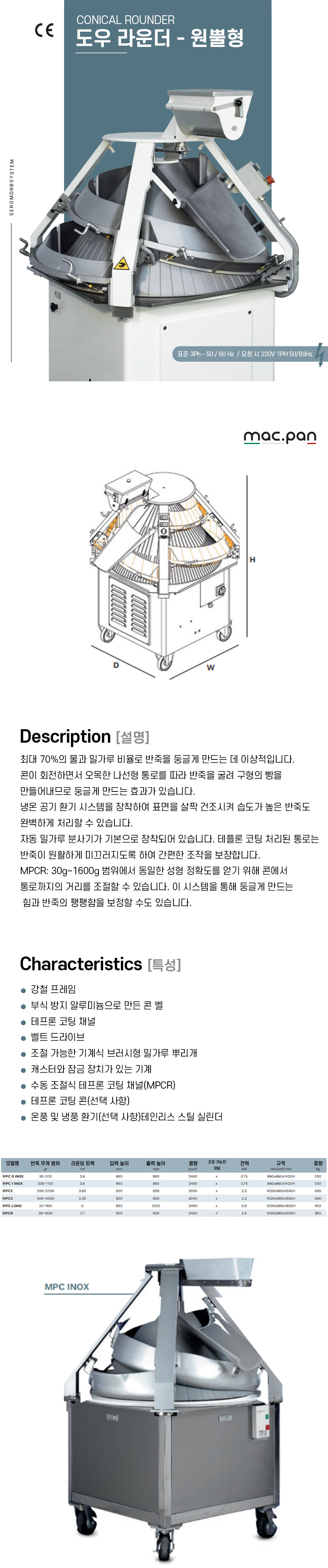 V 콘이 회전하면서 오목한 나선형 통로를 반죽을 굴려 구형(O) 모양으로 둥글게 만드는 효과가 있습니다.