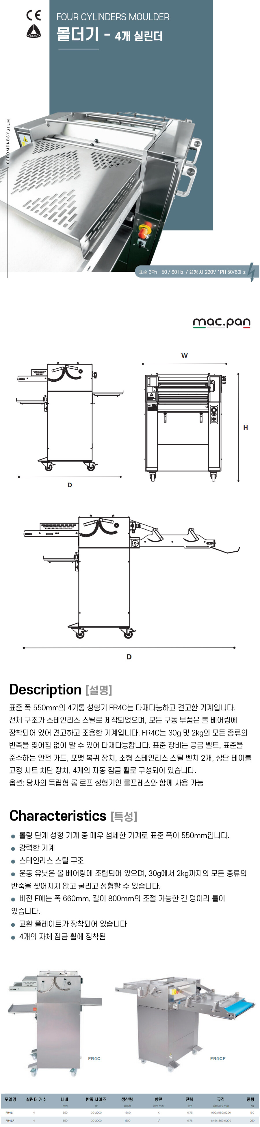 V 표준 폭 550mm 4개의 실린더형 몰더기는 반죽을 찢어짐 없이 펴준 후 말아 올릴 수 있어 다재다능합니다.